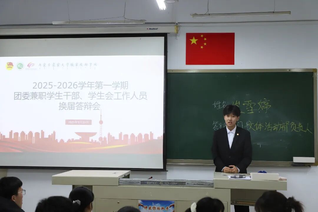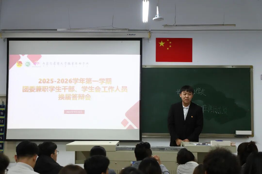9月23日晚,学院团委于教学楼举办学生干部换届答辩会。学院团委书记董智勇老师出席答辩现场,团委各科室老师参加答辩会。