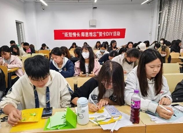 为弘扬尊师重教的优良传统,引导学生以实际行动表达对教师的敬意与感恩之情,9月24日,由学院团委社团管理部主办、外语社团承办的“纸短情长 师恩难忘”贺卡DIY活动在教学楼A110举办。