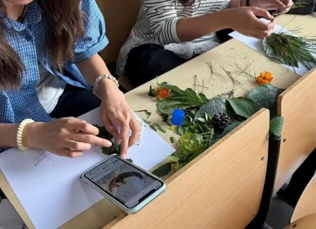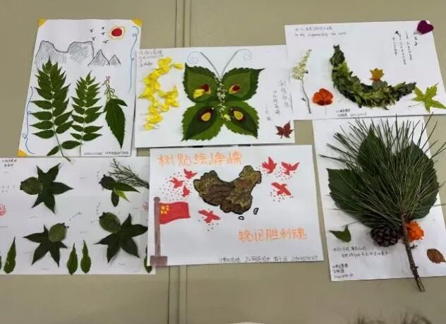 树木是坚韧与生命力的象征,正如中华民族在无数次斗争中展现出的不屈精神。本次活动同学们以树为纸,以叶为墨,这不仅是一次艺术创作,更是一场深刻的精神洗礼和一堂生动的爱国主义教育。