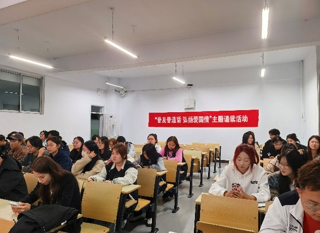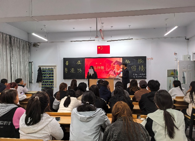 为深入贯彻落实习近平总书记关于教育的重要论述和关于语言文字的重要指示批示精神,聚焦落实立德树人根本任务,以提升国家通用语言文字普及质量为核心,增强师生规范使用国家通用语言文字意识与能力,为铸牢中华民族共同体意识提供坚实语言基础,9月25日,由学院团委社团管理部主办、蒙古马校园讲解社团承办的“普及普通话,弘扬爱国情”主题诵读活动于教学楼A309举办。