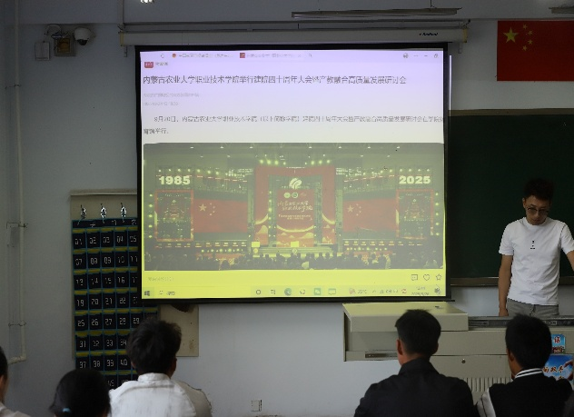 为回顾学院办学四十载光辉历程,彰显北疆职业教育育人成果,全方位呈现学院四十年职教发展成果,以铸牢中华民族共同体意识为主线,秉承艰苦创业的优良传统,践行为党育人、为国育才的初心使命,以立德树人为根本,以强农兴农为己任,9月26日,由学院团委主办的“弦歌不辍四十载 北疆职教育英才”活动于教学楼A203举办,团委社团管理部副部长赛音朝格图出席本次活动。
