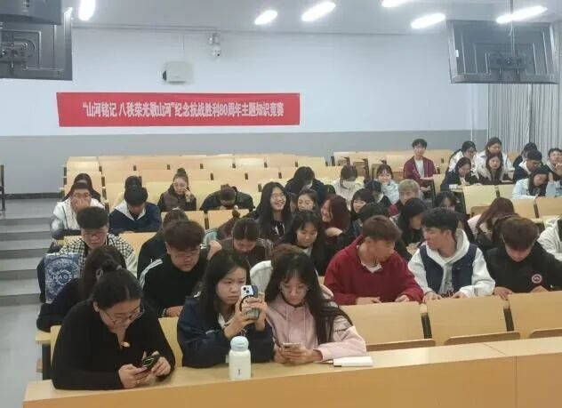 为纪念中国人民抗日战争暨世界反法西斯战争胜利80周年,弘扬伟大的抗战精神,缅怀革命先烈,引导学生铭记历史,砥砺奋进,10月15日,由学院社团管理部主办、九峰山校园旅行社承办的“山河铭记 八秩荣光敬山河”纪念抗战胜利80周年主题知识竞赛在教学楼B201举办。