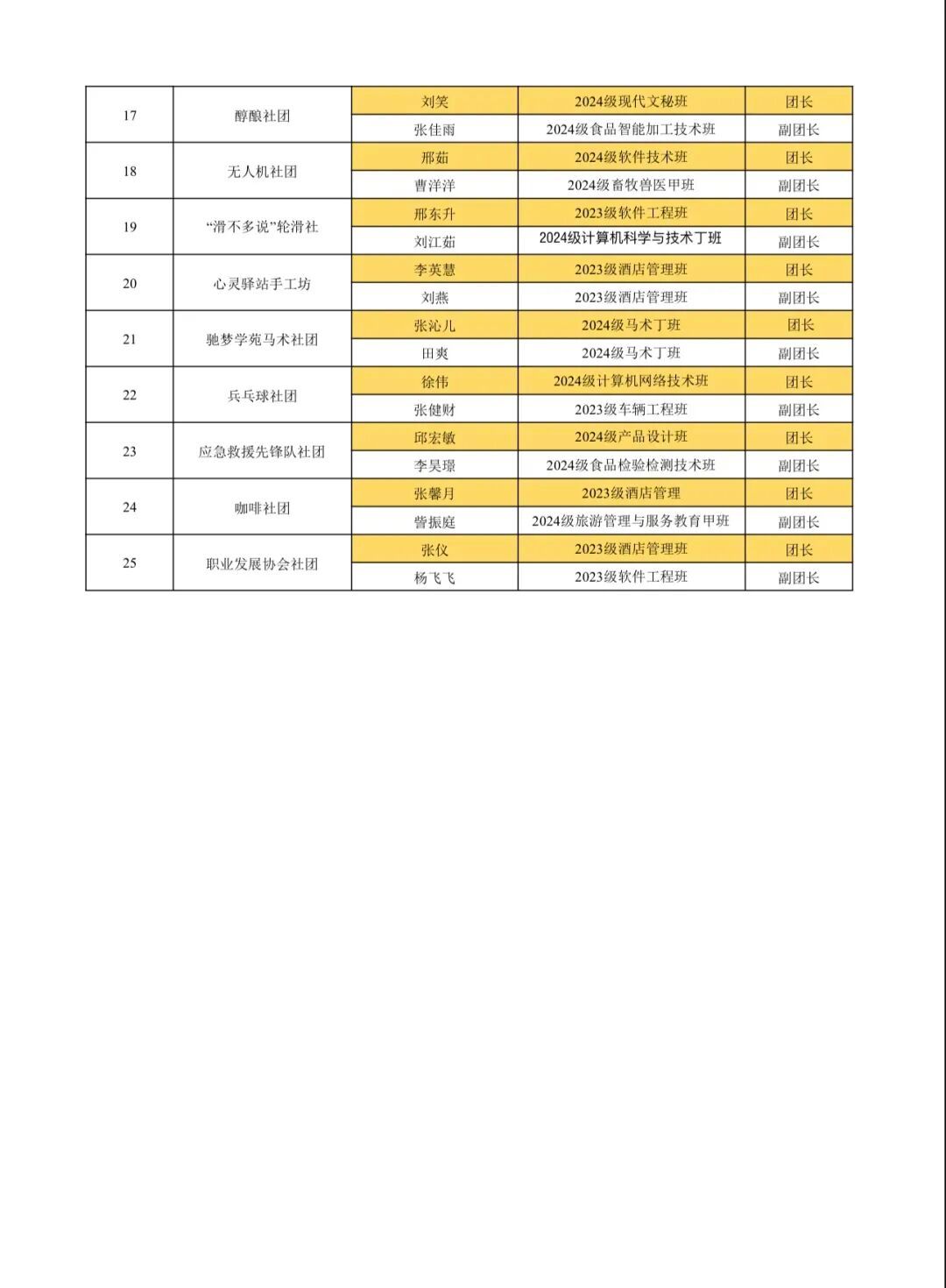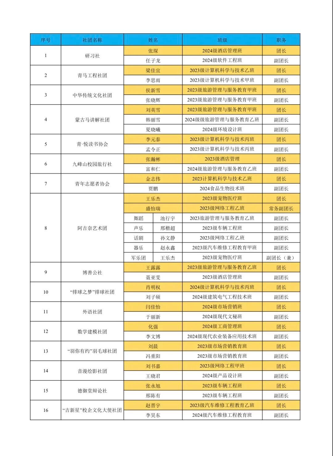 根据《内蒙古农业大学职业技术学院学生社团建设与管理办法》要求,通过个人申请、资格审核、面试答辩、学院学生社团建设管理评议委员会审核流程,2025年社团骨干成员于2025年10月13日在教学楼C302进行换届竞选。为保证学院学生骨干选举的公开、公平、公正、加强选举透明度,接受全体师生监督,现将各社团拟用人员的有关情况予以公示(试用期为一个月)。