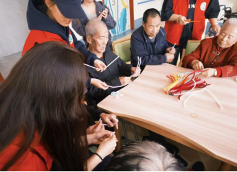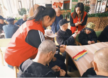 现场最具温情的画面,当属志愿者与老人们共同参与的手工互动环节。志愿者们与老人们围坐一桌,手把手教老人制作手工品,色彩斑斓的材料在指尖穿梭,老人们专注的神情与志愿者耐心的指导相映成趣,欢声笑语充满整个活动空间。此外,志愿者还与老人们共同完成合影留念,红色的活动横幅下,一张张笑脸定格成最温暖的画面。