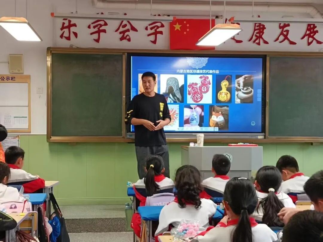 为让同学们了解内蒙古地区非遗文化的代表作品、历史渊源与独特魅力,感受传统技艺的传承故事和非遗背后的文化内涵,10月24日,艺术设计系王超老师带领学生志愿者走进内蒙古农业大学附属学校,为同学们带来一场非遗文化体验课。
