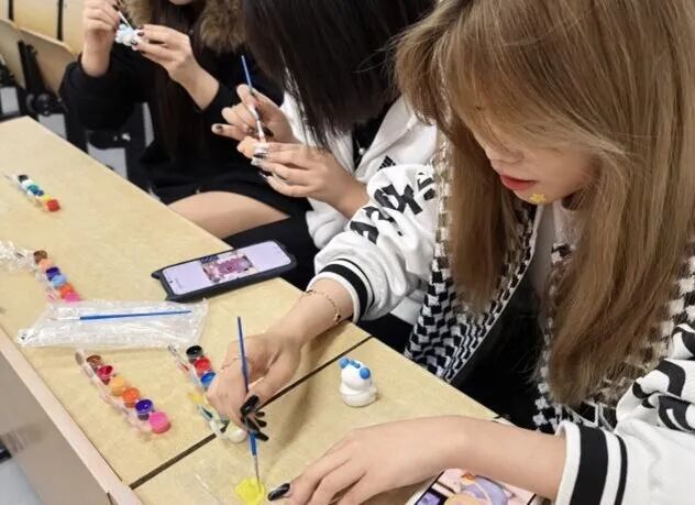 活动现场洋溢着浓厚的创作氛围,同学们手持调色盘与画笔,在素白的石膏胚体上精心描绘。从经典卡通形象到原创艺术创作,一个个单调的石膏胚体在同学们的巧手描绘下焕发独特光彩。彩绘过程中,同学们不仅掌握石膏彩绘的基本技巧,更在交流配色方案、分享创作灵感的过程中增进友谊,充分展现同学们丰富的想象力与艺术创造力。