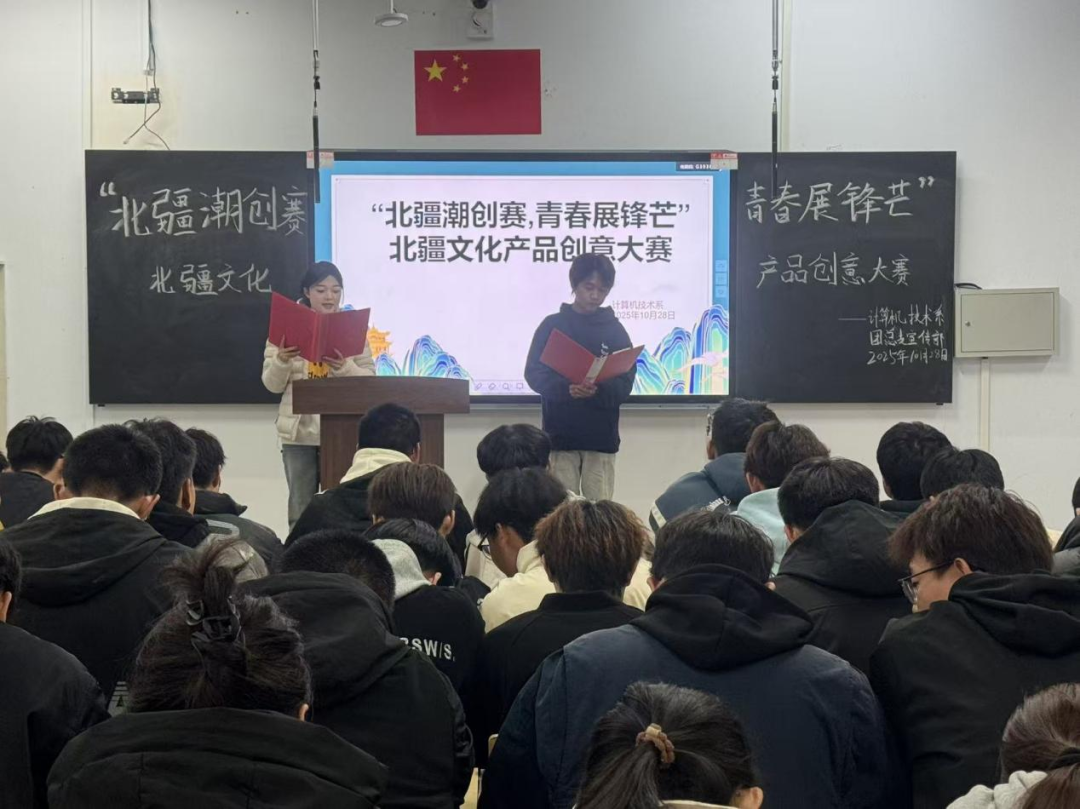 为深入贯彻落实习近平文化思想和习近平总书记关于青年工作的重要思想,激发青年的创新思维与创意热情,10月28日,计算机技术系于教学楼C101教室举办“北疆潮创赛,青春展锋芒”北疆文化产品创意大赛。