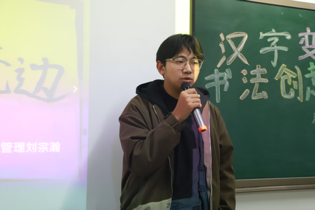 各参赛者通过PPT汇报展示,围绕创意书法作品展开系统呈现,详细阐述作品的创作灵感来源,包括对甲骨文、金文等古文字形态的借鉴,以及对现代设计元素的融合思路,还通过现场演示书法笔法的变化,直观呈现汉字从结构解构到意象重构的过程。