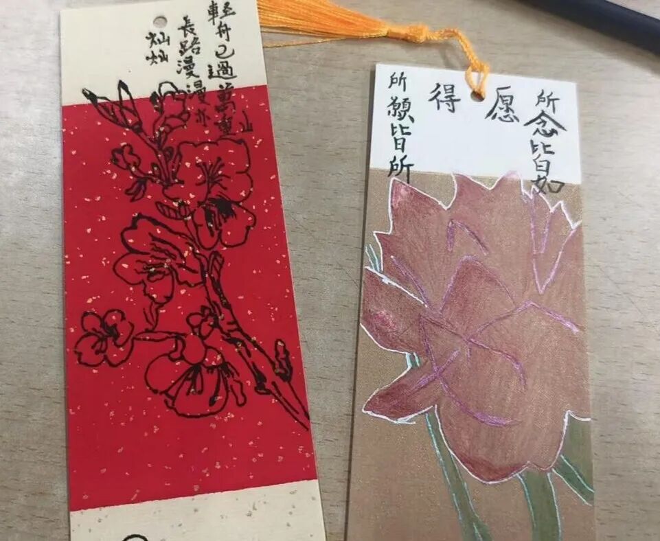 活动现场,同学们热情高涨,或凝神构思,或挥笔创作,以“感恩”主题,将对父母的牵挂、对师长的敬意、对朋友的珍视、对生活的热爱融入笔尖。一张张小小的书签,或古朴典雅,或活泼灵动,每一笔色彩、每一句文字都饱含着最真挚的情感,成为独一无二的“感恩使者”。