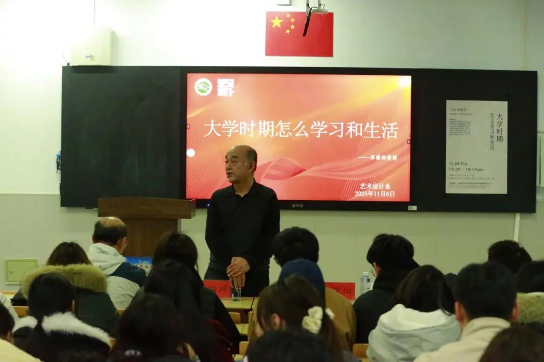 为帮助新生更快适应大学节奏,明确学习目标,规划校园生活,11月6日,艺术设计系于教学楼B101教室举办“大学生怎样学习和生活”主题讲座。讲座由内蒙古农业大学关工委副主任厚福祥教授主讲,艺术设计系党总支书记郗福兵、辅导员张重阳出席讲座。