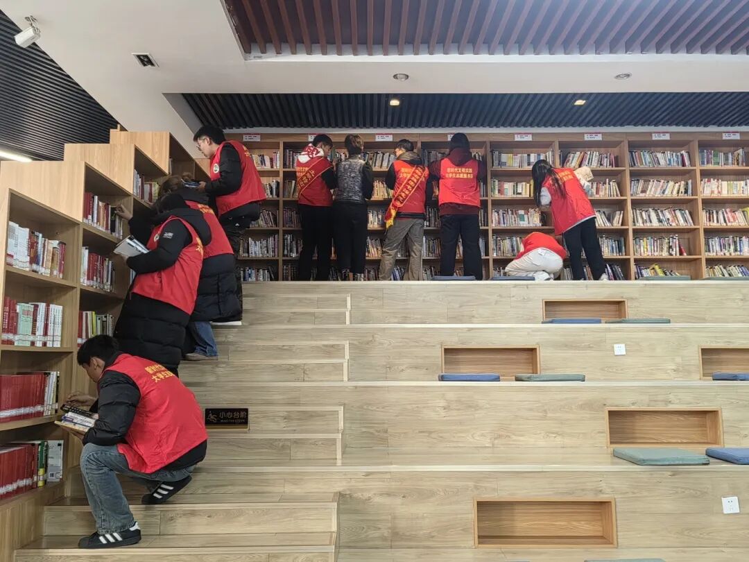 活动现场,志愿者们严格服从组织指挥,有的将错位书籍精准归位,协助管理员完成新书拆封、分类与上架工作,并对热门区域书籍进行细致盘点;有的为到馆读者提供引导服务,耐心解答咨询;有的协助青少年完成书籍检索,用贴心服务搭建起便捷阅读的“桥梁”。