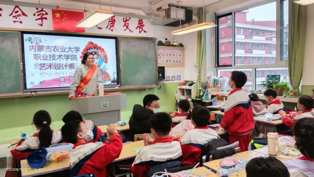 为传承中华优秀传统文化,让非遗文化在青少年心中扎根,11月7日,艺术设计系党总支书记郗福兵、辅导员李雪莹带领学生志愿者走进内蒙古农业大学附属学校,开展“非遗文化进校园”系列活动。