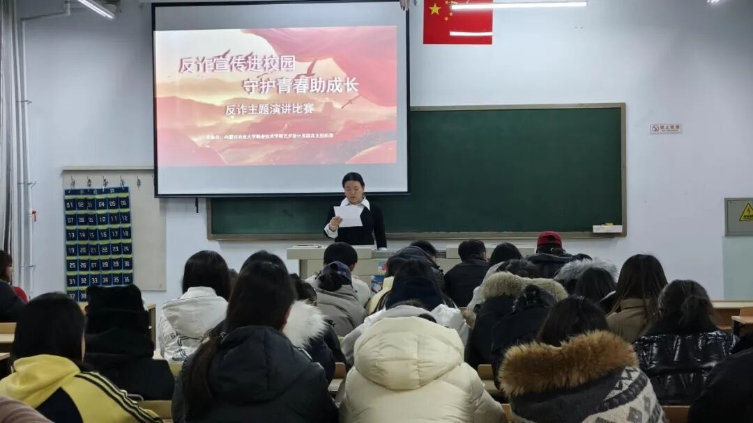 为贯彻落实反诈宣传工作要求,切实增强校园反诈宣传力度,守护学生财产安全与合法权益,11月10日,艺术设计系于教学楼A110教室举办“反诈宣传进校园守护青春助成长”主题演讲比赛。