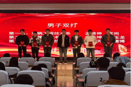 车辆工程技术系孟锦伸和宫尚荣获男子双打第一名、计算机技术系袁子坤和左玉龙荣获男子双打第二名、食品工程技术系贺翔天和杨潇博荣获男子双打第三名。