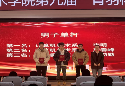 计算机技术系李明荣获男子单打第一名、计算机技术系严春峰荣获男子单打第二名、畜牧兽医技术系卢勖勤荣获男子单打第三名。