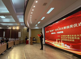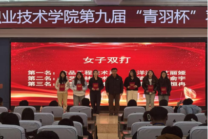 为全面推进学生素质教育,激励我院学子德智体美劳全面发展,彰显当代大学生朝气蓬勃和积极向上的精神风貌,11月12日,由学院团委主办、园艺园林技术系承办的第九届“青羽杯”羽毛球决赛于图书馆报告厅举办颁奖典礼。学院团委书记董智勇、园艺园林技术系团总支书记史娜、学院团委老师张宇及各系(院)辅导员出席活动。