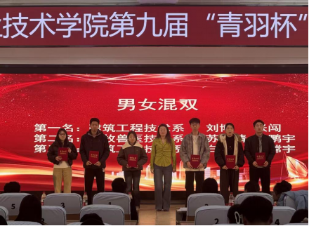 建筑工程技术系刘博和张闯荣获男女混合双打第一名、畜牧兽医技术系苏文婧和王鹏宇荣获男女混合双打第二名、建筑工程技术系白宇和胡嫦宇荣获男女混合双打第三名。