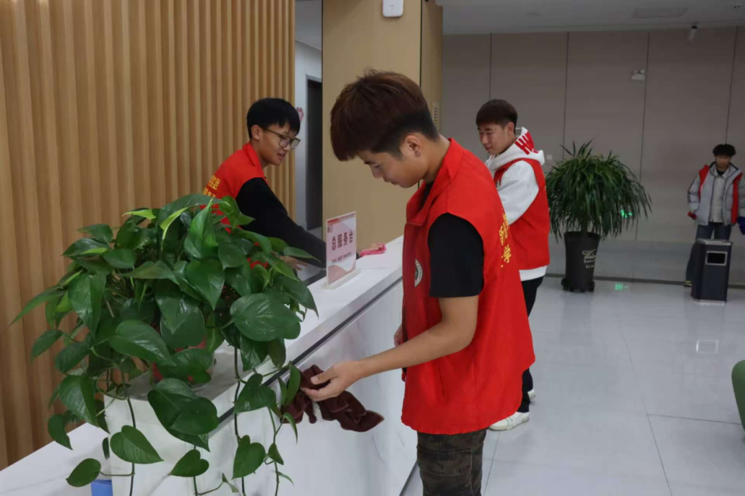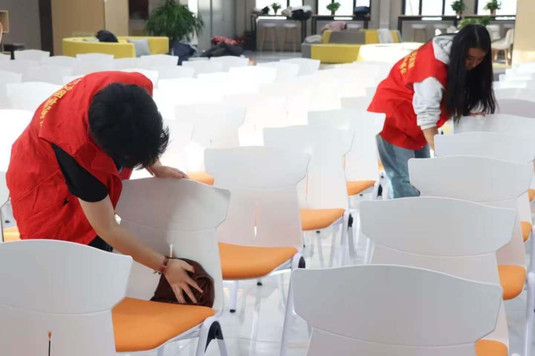 志愿者分工明确、配合默契,有的蹲身俯身,细致清理墙角缝隙的积尘与杂物;有的手持抹布,反复擦拭服务中心的桌椅、公示栏及公共设施;有的耐心规整散放物品,让公共区域摆放井然有序。经过一番细致清扫,原本的卫生死角被逐一攻克,大厅的环境整洁度与舒适度显著提升。