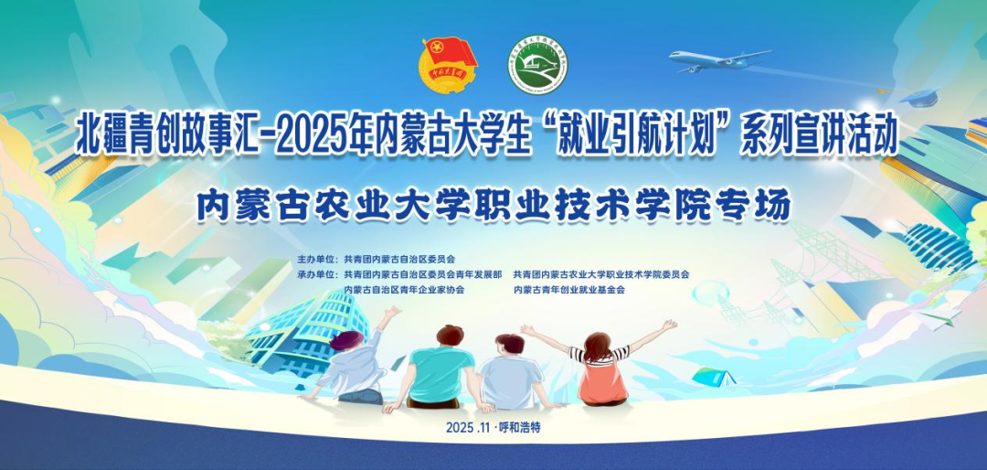 为深入贯彻就业优先战略,落实高校毕业生高质量就业服务体系建设要求,引导学生树立正确就业观、明晰职业发展路径,11月25日,2025年内蒙古大学生“就业引航计划”系列宣讲——内蒙古农业大学职业技术学院专场活动在学院春雨剧院顺利举行。本次活动由共青团内蒙古自治区委员会主办,由共青团内蒙古农业大学职业技术学院委员会、共青团内蒙古自治区委员会青年发展部等单位承办。活动吸引了全院320余名师生现场参与,共同聆听青年榜样奋斗故事,汲取职业成长力量,凝聚奋进共识。