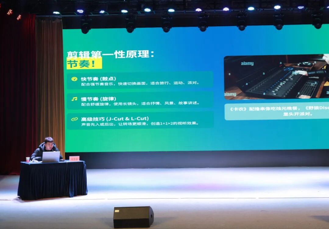 本次讲座采用“室内+室外”相结合的创新形式开展。讲座内容聚焦视觉创作的底层逻辑,系统讲解摄影创作的三大核心要素。在构图方面,深入剖析三分法、对称构图、对角线构图等经典构图技巧的运用要领;在角度方面,着重阐释低机位仰拍、侧身拍摄等手法的视觉效果;在光线方面,通过对比示范解析不同光位的表现力以及不同光线角度对画面氛围的塑造作用。