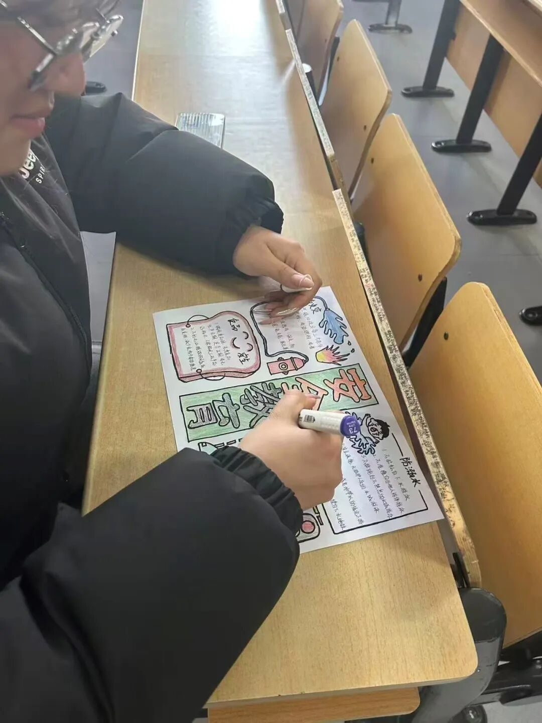 同学们以A4纸为画布,围绕消防安全、交通安全、防诈骗、食品安全等多个方面进行创意表达,用画笔勾勒出一幅幅内容丰富、色彩鲜明的手抄报作品,并在绘制过程中加深对安全知识的理解,也展现出当代大学生良好的创新精神。