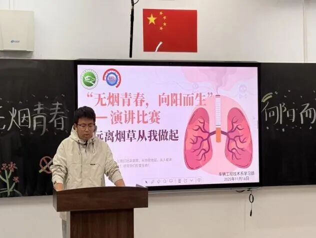 为响应国家控烟行动要求,增强青少年对烟草危害的认知,引导学生养成健康生活习惯,11月16日,车辆工程技术系于教学楼C301教室举办“无烟青春,向阳而生”主题演讲比赛。