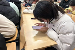本次竞赛依托线上答题平台举办,赛制设必答题、风险题两大环节,涵盖消防安全、网络诈骗、交通安全等基础知识点,题目以单选、多选形式呈现。竞赛中,同学们精神饱满、专注审题,指尖快速作答,手机屏幕答题进度条持续刷新。面对“冒充客服退款诈骗应对”等实操性题目,大家结合自身得分谨慎选题、从容应答,体现出良好的应急处置思维与知识应用能力。