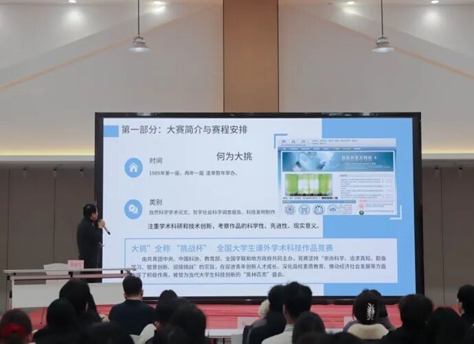 赛音朝格图老师首先解读“挑战杯”竞赛的历史沿革、赛事规则及近年来我院的参赛成果,强调竞赛在锤炼学生实践能力、深化产学研融合中的重要意义。他鼓励全体学生以竞赛为契机,立足专业特色,聚焦行业痛点与社会需求,将创意转化为兼具创新性与可行性的创业方案。