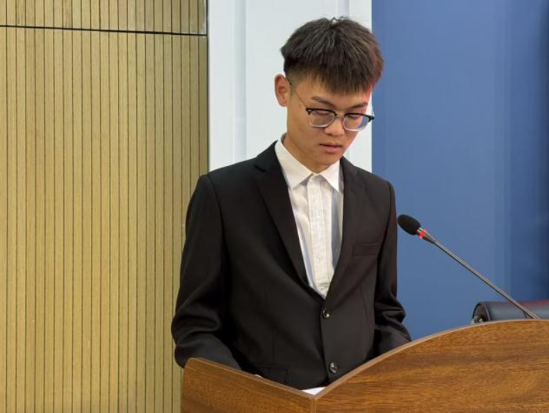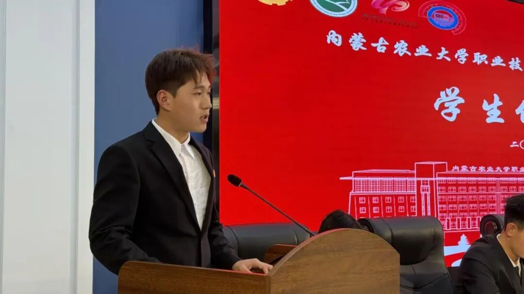 第十五届学生会宿管部负责人、第十六届学生会主席团成员孙梓毅同学致闭幕词,愿全体师生携手并肩、凝心聚力,充分彰显车辆工程技术系的专业优势与青春活力,以技能创新为翼、以服务同学为根,共同推动系部各项工作高质量发展。