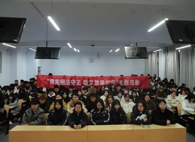 为深入贯彻落实党的二十大精神和党的二十届四中全会精神,持续推进学习贯彻习近平新时代中国特色社会主义思想主题教育,学院以铸牢中华民族共同体意识为主线,将爱国主义教育、红色基因传承与法治素养培育有机融合,积极开展红色观影系列教育活动。12月19日,学院团委于教学楼C102教室举办“尊宪明法守正,防艾禁毒护安”主题观影活动。