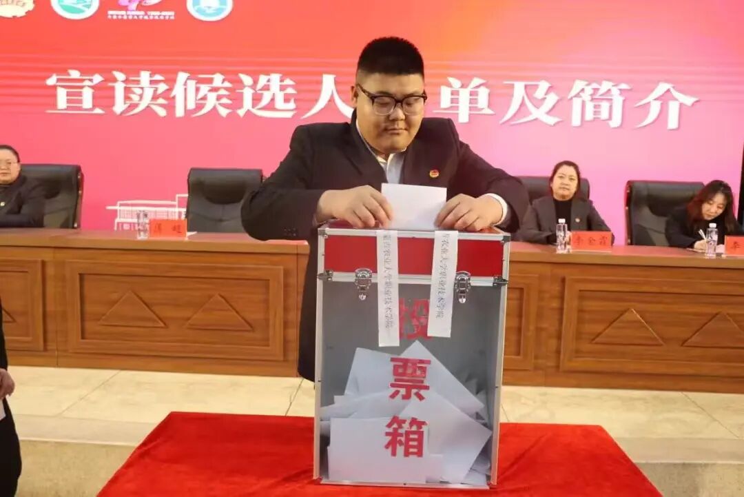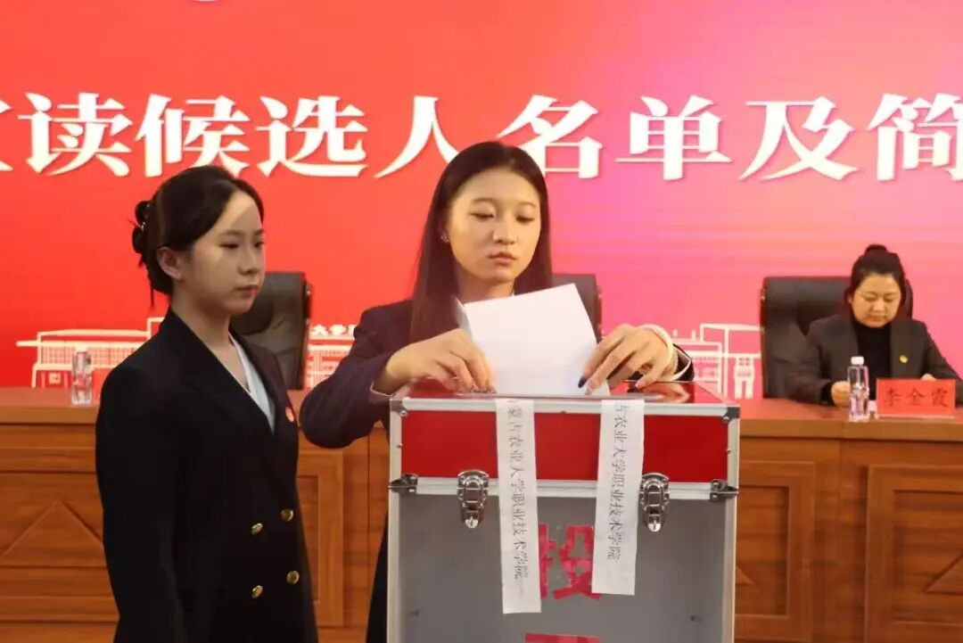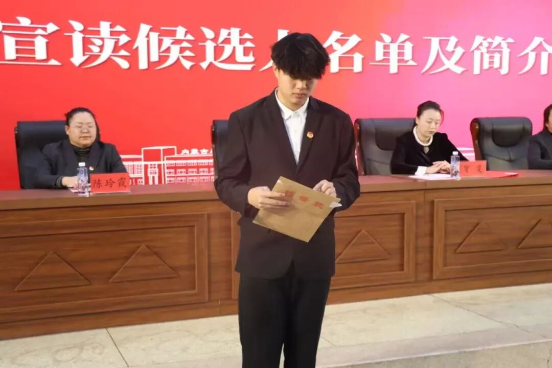 工作人员宣读旅游管理系第十六届学生会主席团成员及第十六次学生代表大会常任代表候选人名单及简介,详细解读大会选举办法后现场当众检验票箱并加封。全体学生代表严格按照选举流程,认真行使民主权利,郑重投下自己的一票,顺利完成投票选举工作。白延松同学公布大会选举结果,新一届学生会主席团成员及常任代表正式产生。