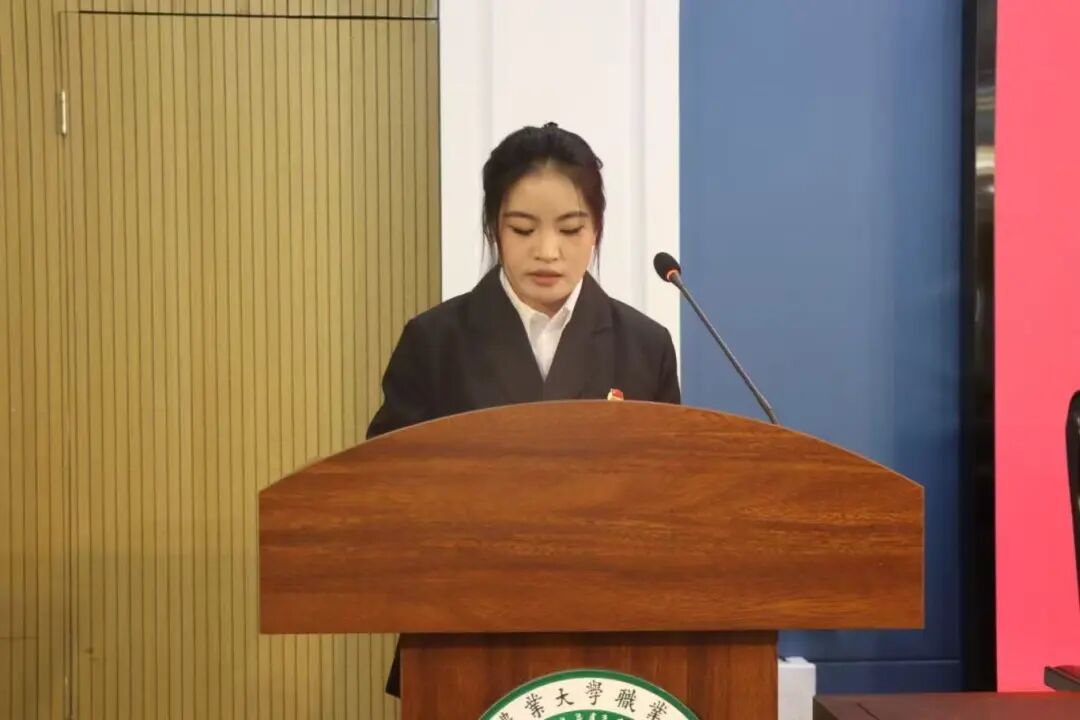 旅游管理系党总支书记贺斐致辞,她充分肯定第十五届学生会在服务同学成长、助力系部发展等方面作出的积极贡献,向长期以来辛勤付出的学生会干部和积极参与学生工作的同学们表示感谢。同时,她结合时代发展要求和系部人才培养目标,对即将产生的新一届学生会提出明确要求,鼓励全体学生代表牢记使命、不负重托,以实际行动践行青年担当,为系部高质量发展贡献青春智慧。