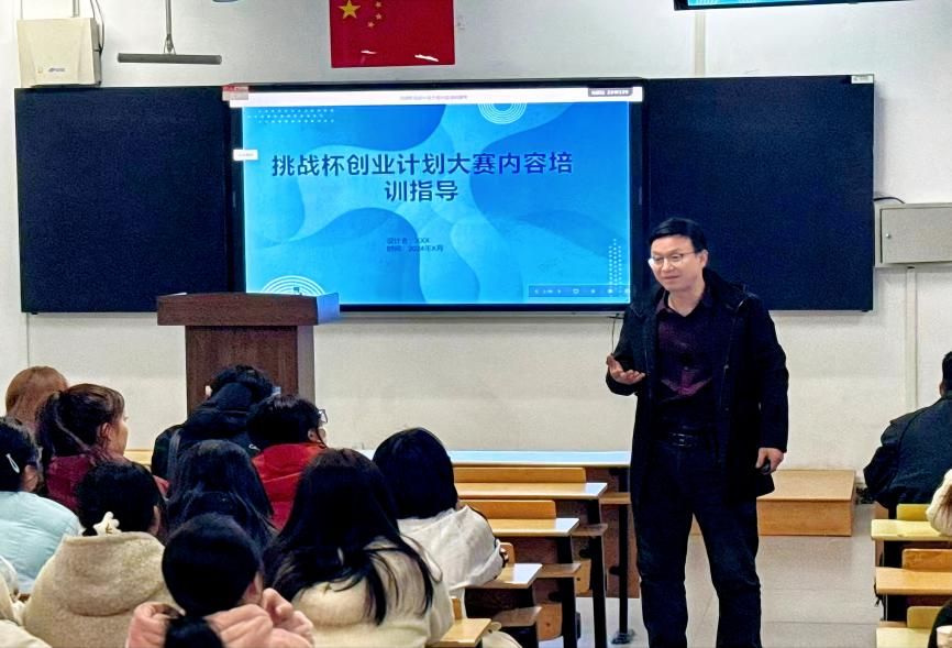 为深化创新创业教育改革,助力参赛团队精准备赛、精准发力,3月10日,经济管理系于教学楼101教室举办“挑战杯”赛前培训专题讲座。活动由经济管理系副书记、副主任曹睿亮主讲。