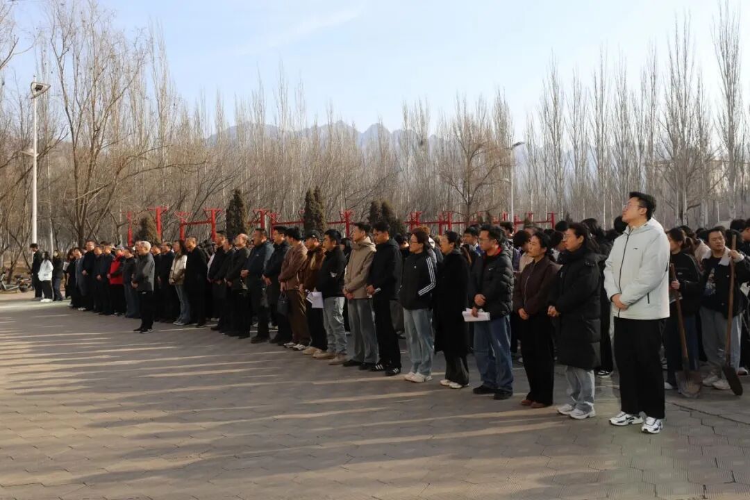 韩瑞平在讲话中回顾了学院扎根土默特川戈壁荒滩、师生同心艰苦创业的奋斗历程,从建院初期到如今现代化的职业院校,一代代职院人以“战天斗地”的豪情,用双手铺路造林、建设校园,铸就了“敬业务实、团结奉献、开拓进取、艰苦创业”的职院精神。他强调,劳动教育是立德树人的重要内容,学院始终坚持“立足内蒙古,面向‘三农’,立德树人,强农兴农”的办学定位,将劳动教育贯穿人才培养全过程。本次植树活动与劳动教育月的启动,是对“十年树木,百年树人”教育规律的践行,更是对劳动精神、职院精神的生动传承,希望全院师生以劳铸魂、以劳强技、以劳传薪,在劳动实践中锤炼品格、增长才干。