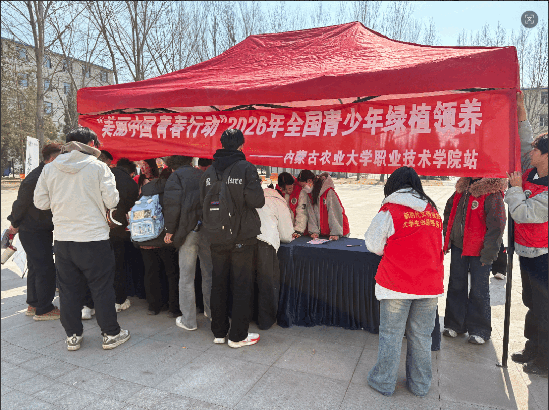 为深入贯彻习近平生态文明思想,践行“生态兴则文明兴”的发展理念,引导学生树立绿色低碳生活意识,涵养爱护自然、敬畏生命的责任担当,3月12日,学院团委在小广场举办“美丽中国 青春行动”2026年全国青少年绿植领养活动。