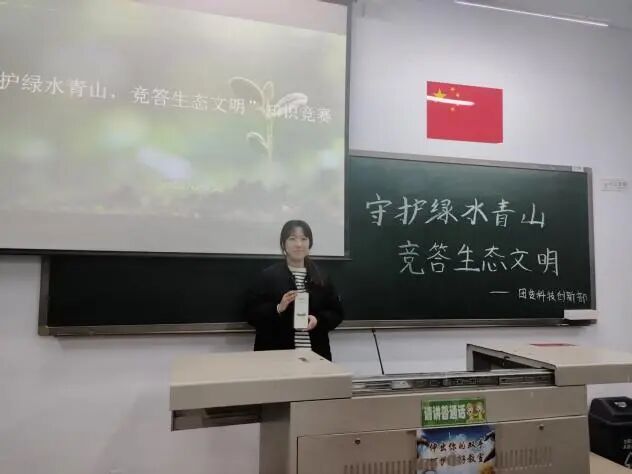 为深入贯彻习近平生态文明思想,全面落实绿色低碳发展国民教育体系建设相关要求,大力宣传生态文明理念与环境保护知识,引导学生增强生态保护意识、树立绿色发展观念、践行低碳生活方式,3月12日,学院团委在教学楼A103举办“守护绿水青山 竞答生态文明”主题知识竞赛。