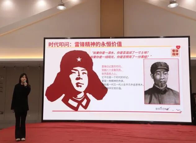 比赛现场氛围庄重而热烈,参赛选手们精神饱满、意气风发,依次登台展现青春风采。他们或深情追忆雷锋同志的光辉事迹,重温无私奉献的初心;或分享身边“活雷锋”的暖心瞬间,传递平凡中的伟大;或结合自身学习实践与社会观察,畅谈新时代青年如何将雷锋精神融入日常、化作经常,以实际行动践行使命担当。选手们以真挚的情感、生动的语言、鲜活的事例,娓娓讲述雷锋故事、深刻诠释榜样力量,每一句演讲都饱含赤诚,每一段分享都传递正能量,赢得现场评委和观众的阵阵掌声。