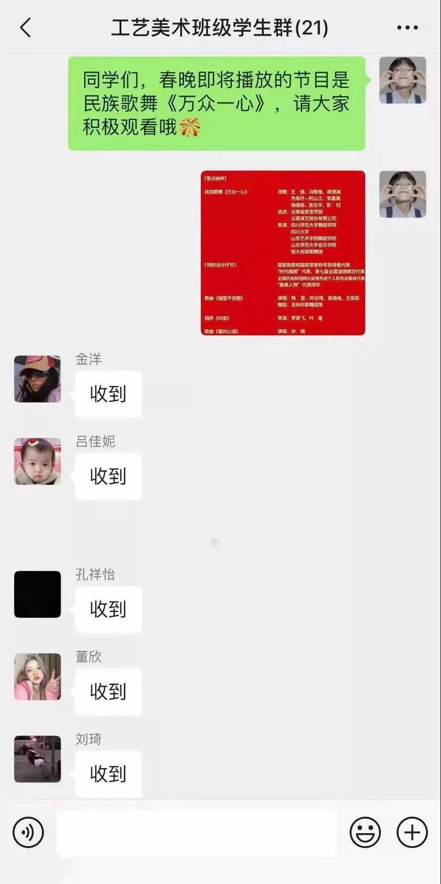 为进一步加强民族团结进步教育,铸牢中华民族共同体意识,学院艺术设计系各班级于春节前后相继开展了“铸牢中华民族共同体意识”线上主题团日活动。